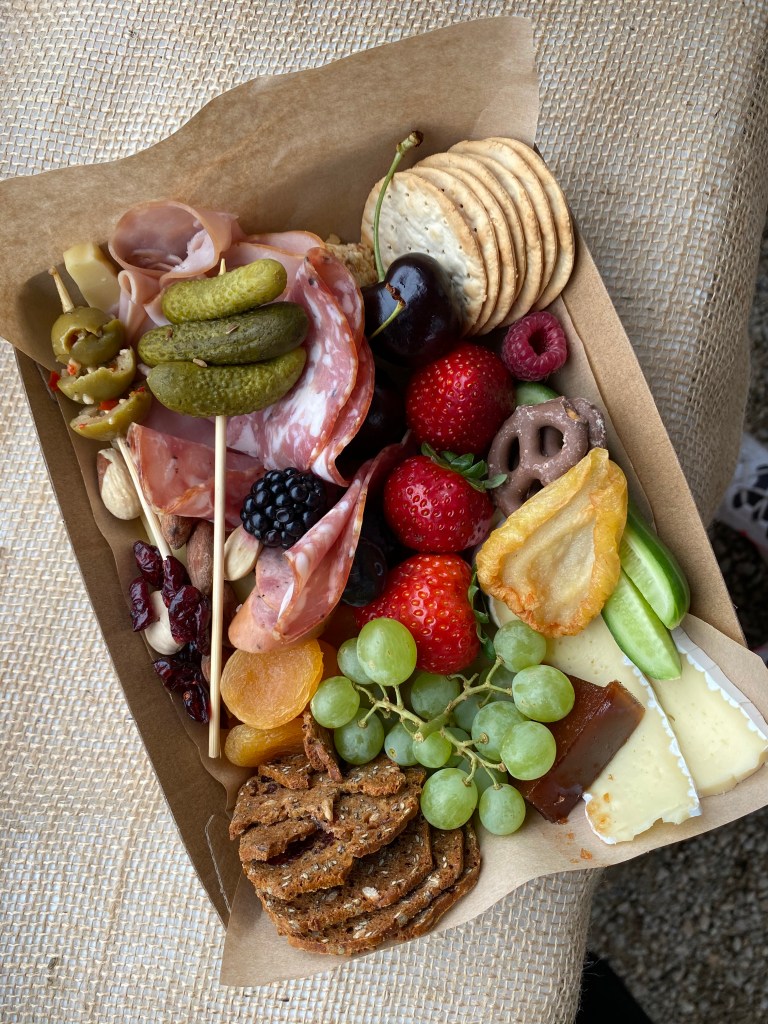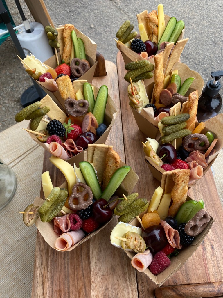 Are a great single size ready-to-go portion, containing a selection of cheeses, charcuterie, fruits, dried fruits and nuts, chocolate pretzels and crackers.